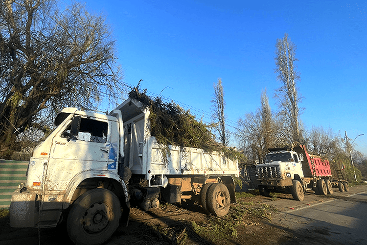 Contamos con equipamiento y maquinaria especializada, incluyendo camiones con alza hombre para poda en altura, máquinas de chipeo móviles que procesan los residuos vegetales en terreno, y camiones para el retiro autorizado de residuos. Todos los residuos son gestionados de forma responsable y entregamos certificado de disposición final, garantizando su eliminación en lugares autorizados.